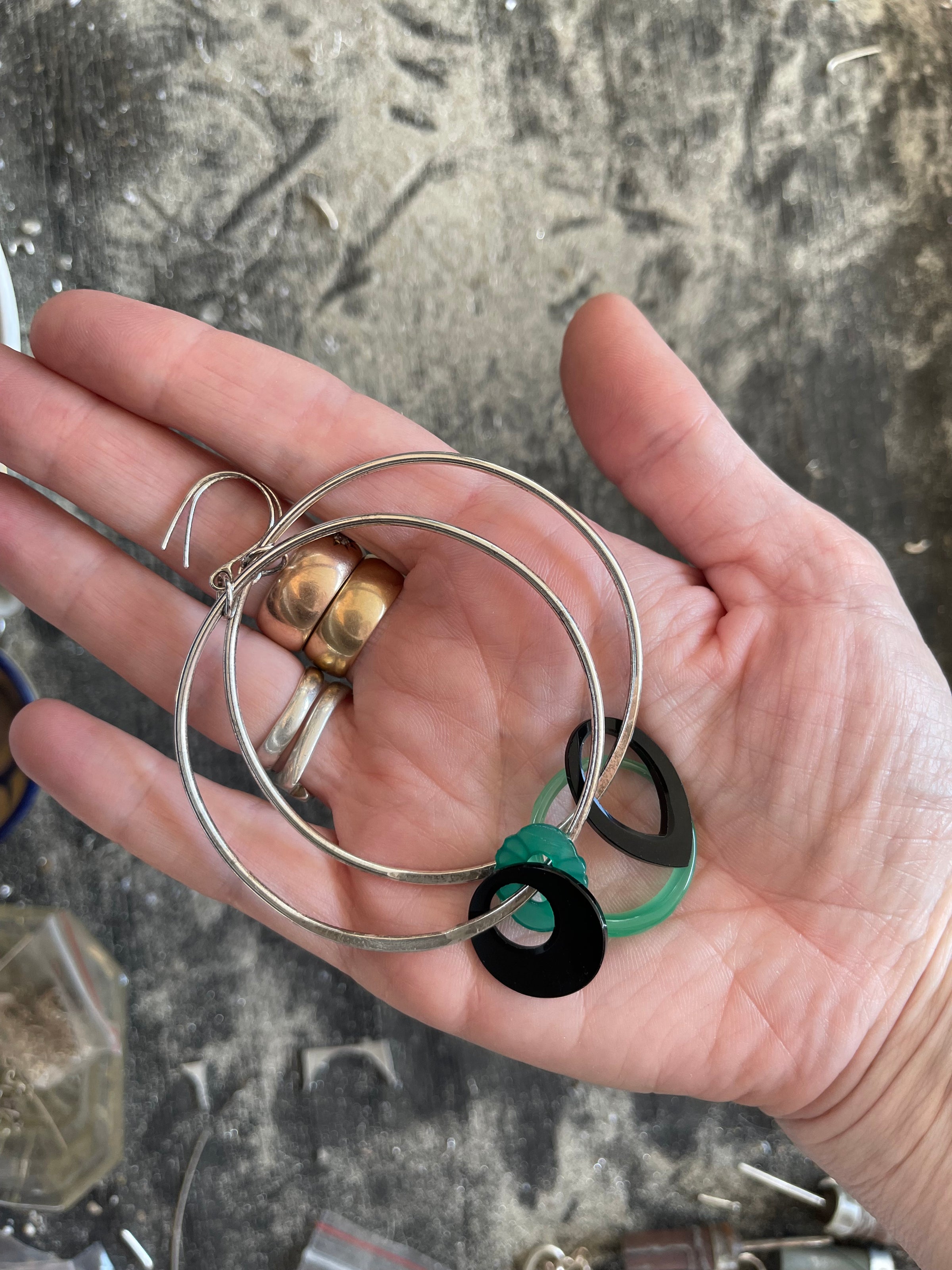 Hadn fabricated sterling silver components, 1920s Czechoslovakian + French glass, 1960s French glass (black circle).